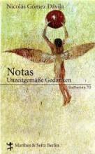 Wer sich bewußt Gomez Davila widmet, hat sich ebenso bewußt aus der Oberfläche der herrschenden Gemeinplätze zurückgezogen, um in das reine und ungebundene Denken selbst einzutauchen. Nicolás Gómez Dávila (1913–1994) ist neben Gabriel GarcÃa Márquez der bedeutendste Autor Kolumbiens im 20. Jahrhundert. Er ist – wie angedeutet - ein Selbstdenker, der gerade deshalb die im Jetzt und Hier entstehende fragmentarische Form bevorzugt. Der aphoristische Stil in Anknüpfung an Nietzsche ist dafür die natürliche Konsequenz. Es geht dem Autor hier um die Wiederkehr des aristokratischen Gestus, um das Anliegen einer über Literatur erzielten radikalen Entrückung vom Allgemeinen.
